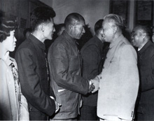 1959年10月26日,國家主席劉少奇等黨和國家領導人親切接見了來自全國各條戰線的勞動模範,劉少奇的手和掏糞工人時傳祥的手緊緊地握在一起。