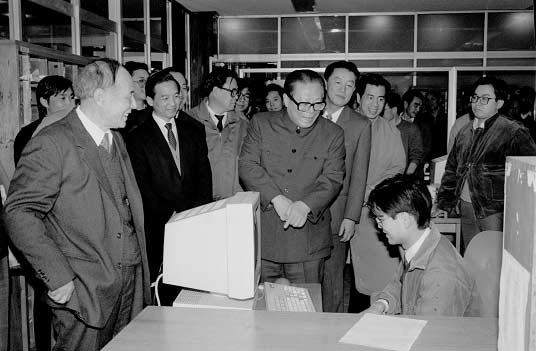 11月4號這一天,中共新華社黨組書記、社長穆青,新華社黨組副書記、副社長郭超人,首先向江澤民總書記匯報了新華社的宣傳報道、事業發展、隊伍建設、技術建設等情況。隨後,江澤民來到新華社總編室、發稿中心、計算機房,參觀了稿件的計算機處理和播發的全過程,向新華社廣大編輯、記者和技術人員致以親切的慰問。