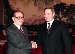 11月3日,國家主席江澤民在北京中南海會見俄羅斯聯邦總理米哈伊爾·卡西亞諾夫