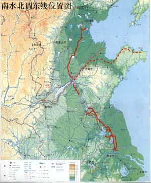 南水北調東線位置圖2000年10月15日,中共中央政治局常委、國務院總理朱鎔基在中南海主持召開會議,聽取國務院有關部門領導和各方面專家對南水北調工程的意見。朱鎔基指出,南水北調工程是解決我國北方水資源嚴重短缺問題的特大型基礎設施項目。根據黨的十五屆五中全會通過的關於制定“十五”計劃《建議》,要“加緊南水北調工程的前期工作,盡早開工建設”。