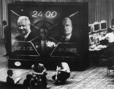 1996年葉利欽再次競選成功,圖為在第二輪選舉即將結束之時