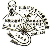 二、出仕階段:1684年康熙南巡北歸,特至曲阜祭孔,三十七歲的孔尚任在御前講經,頗得康熙的賞識,破格授為國子博士,赴京就任。三十九歲,奉命赴江南治水,歷時四載。這個時期,他的足跡幾乎踏遍南明故地,又與一大批有民族氣節的明代遺民結為知交,接受他們的愛國思想,加深了對南明興亡歷史的認識。他積極收集素材,豐富創作《桃花扇》的構思。康熙二十九年(1690年),奉調回京,歷任國子監博士、戶部主事、廣東司外郎。經過畢生努力,三易其稿,康熙三十八年,五十二歲的孔尚任,終於寫成了《桃花扇》。一時洛陽紙貴,不僅在北京頻繁演出,“歲無虛日”,而且流傳到偏遠的地方,連“萬山中,阻絕入境”的楚地容美(今湖北鶴峰縣),也有演出(《桃花扇本末》)。次年三月,孔尚任被免職,“命薄忍遭文字憎,緘口金人受誹謗”(《容美土司田舜年遣使投詩贊予〈桃花扇〉傳奇,依韻卻寄》),從這些詩句看,他這次罷官很可能是因創作《桃花扇》得禍。