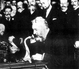 這樣,人類有了最初的電話,揭開了一頁嶄新的交往史。1877年,第一份用電話發出的新聞電訊稿被發送到波士頓《世界報》,標誌著電話為公眾所採用。1878年,貝爾電話公司正式成立。