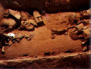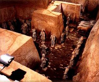 公元1974年3月11日, 陝西省臨潼縣農民在秦始皇陵園東側1公里處打井時,發現秦陶俑殘片及銅鏃、弩機等。