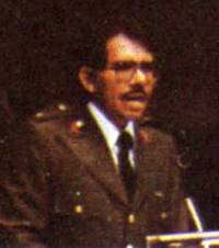 桑地諾主義者領袖奧爾特加1982年3月25日, 桑地諾主義者執政集團在尼加拉瓜暫時取消所有公民權利已達30天,它宣稱它的國家面臨著受到美國侵犯的危險。執政團領導人丹尼爾-奧爾特加-薩維德拉說,美國正在利用洪都拉斯和邁阿密的反桑地諾主義流亡者以實現其“入侵我們國家的計劃”。政府官員說,根據新的法令,言論自由、政治活動權利和結社權以及人身保護權都將被取消。