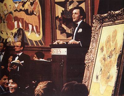 1987年3月31日傍晚, 英國倫敦克裡斯蒂拍賣行裡,荷蘭畫家凡-高的一幅《向日葵》正在拍賣。出價從500萬英鎊開始扶搖直上,4分鐘提高了4倍--2000萬英鎊。最後,隨著長途電話的鈴聲傳來了:“2250萬英鎊!”這令人咋舌的出價無人敢與匹敵,畫售給了不知名的買主。人們事後得知,此畫為日本安田火災海上保險公司所購。為慶祝該公司建立100週年,此畫定於今秋運回日本,巡迴展出後,將陳列在公司本部大廈42層上的東鄉青兒美術館。