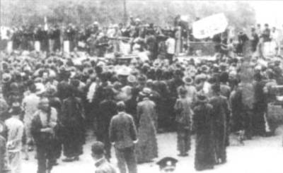 郭沫苦(左一)、沈鈞儒(左二)等在武漢新聞界發表抗日主張
