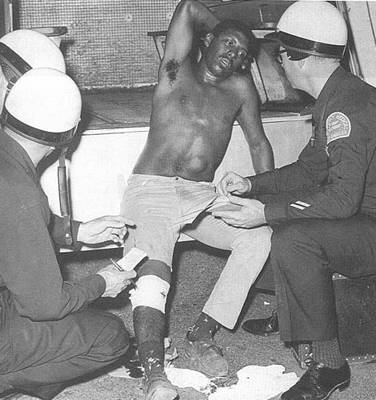 60年代中期,美國黑人運動從非暴力的群眾運動走向城市造 反的高潮。1965年洛杉磯市瓦茨區發生了震動美國社會的黑人騷 亂。是年8月11日,洛杉磯市警察以車速過高為由,逮捕了1名黑 人青年。事件發生後,該市瓦茨區的黑人與警察發生衝突。黑人 搶劫了白人的商店,焚燬建築物。8月16日,騷亂被鎮壓下去。 這次騷亂造成34入死亡,1,032人受傷,財產損失達4千萬美元。