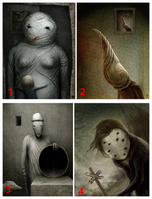 問題:如果你必須面對下列四張圖內其中一個詭異的人,你更有可能選擇面對誰?